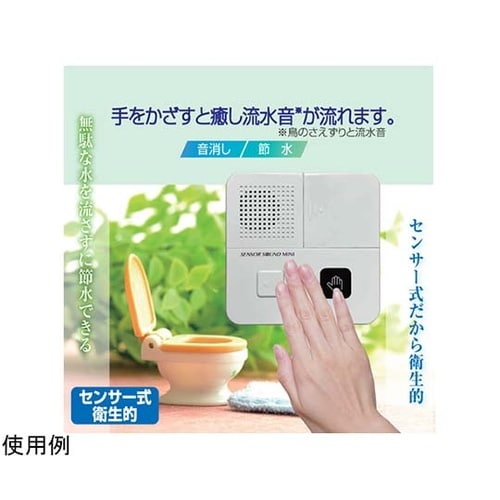 手をかざすと癒し流水音が約40秒間流れ、トイレ使用時の音を消します。無駄な流水を少なくし、節水できます音の途中でもう一度手をかざすと止まります。音は流水音に鳥のさえずりが重なります。 |