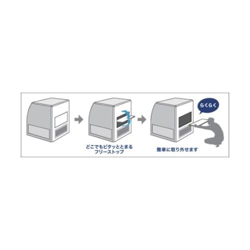 工具を使わずに扉が脱着でき、メンテナンスが簡単です。フリーストップ機構付で、任意の角度で保持できます。扉の不意な脱落を防止する抜止アーム付です。ヒンジ、受座、各2ヶ入1セット品です。 |