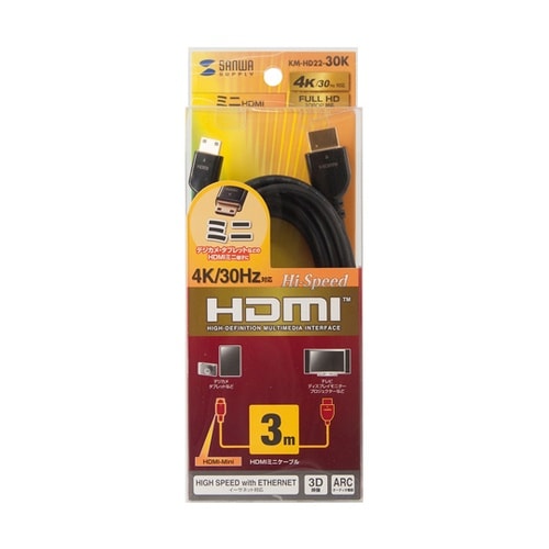 イーサネット対応ハイスピードHDMIミニケーブル KM−HD22−30K