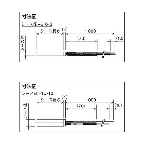 ニクロム線を金属パイプ(シース)で覆ったヒーターです。エレメントは、ステンレス製で長寿命を実現しました。従来困っていたヒーターリード線は、耐熱リード線を使用しています。低温度域から高温度まで最良の温度 |