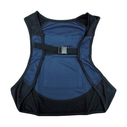 背面ポケットが一つついていますので、背面ポケットに保冷材(別売)を入れて使用します。作業着の中に着用することで、作業着内の空気を冷やすことができます。吸汗性・速乾性に優れており、伸縮性のある素材を使用 |