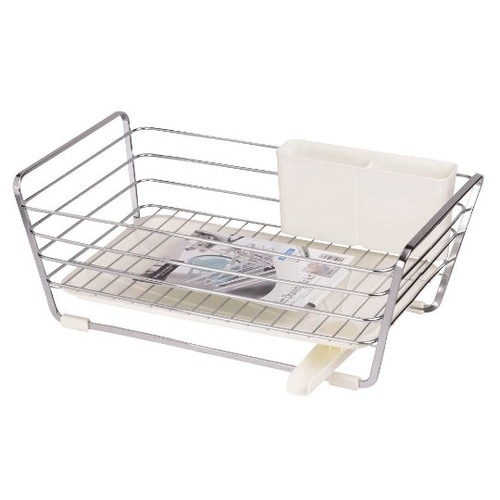 防サビ加工。スリムタイプの水切りバスケット。排水栓付傾斜付トレー。シンクの向きに応じた可動式排水ノズル。水切りポケット付。 |