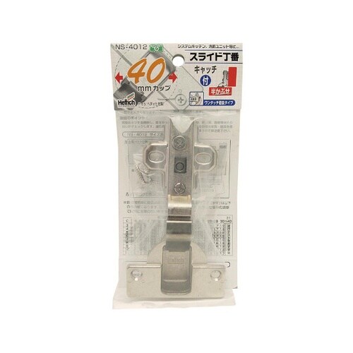 スライド丁番 40mm 半かぶせ キャッチ付 開き95° NS−4012