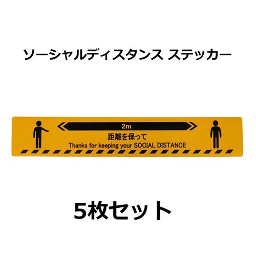 ソーシャルディスタンスステッカー【人形図柄】 黄 5枚セット J2385−Y