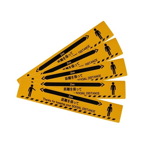 感染症対策、感染拡大防止で注目される「ソーシャルディスタンス(社会的距離)」。距離を取ることで人と人との濃厚接触を避ける試みに有効な手段です。行列などの足元に必要な間隔を開けて貼り付けることで、ソーシ |