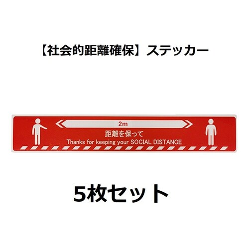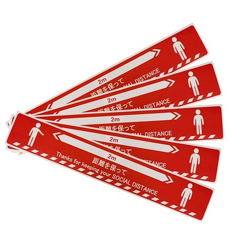 ソーシャルディスタンスステッカー【人形図柄】 赤 5枚セット J2385−R