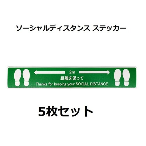ソーシャルディスタンスステッカー【足形図柄】 緑 5枚セット J2386−G