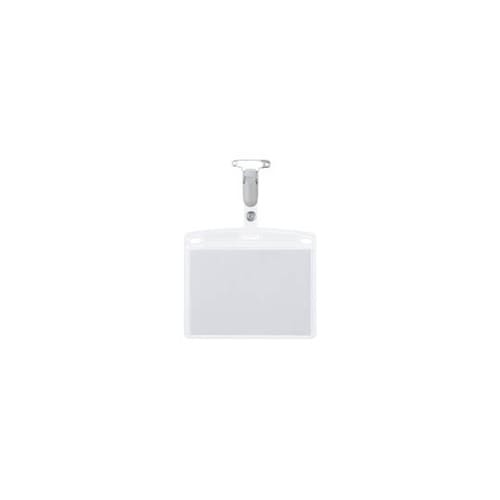 表面特殊加工で名札表面に傷などが付きにくくなっています。プラクリップ(両用)です。非転写でトナーやインキも転写しにくくなっています。カードは上から出し入れするタイプのスタンダード仕様。ソフト素材パスケ |