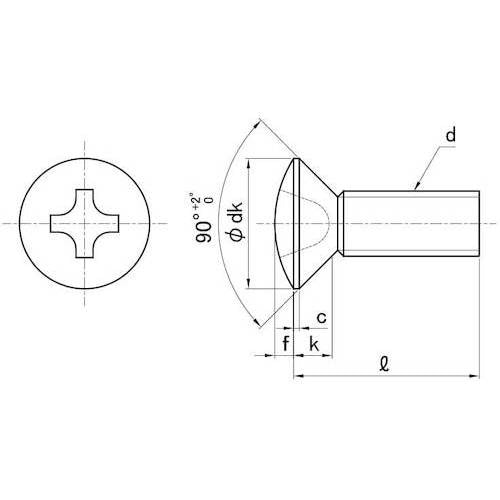 上面が平らで座面が円錐形の頭の形状です。皿小ねじは頭部も含めた全長が長さとなります。(一般的には首下部分の長さ。
