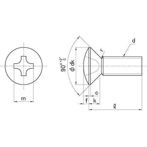 上面が平らで座面が円錐形の頭の形状です。皿小ねじは頭部も含めた全長が長さとなります。(一般的には首下部分の長さ。