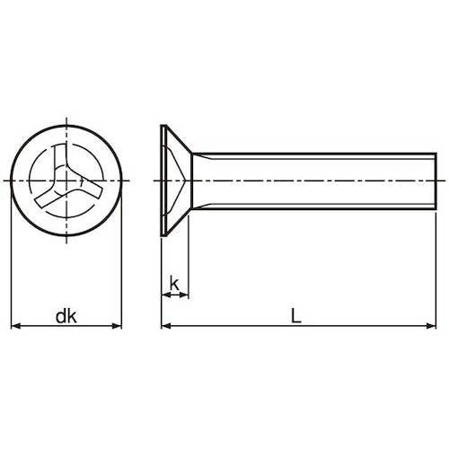 上面が平らで座面が円錐形の頭の形状です。皿小ねじは頭部も含めた全長が長さとなります。(一般的には首下部分の長さ。