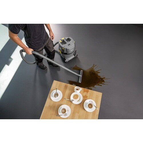 清掃機器や電動工具業界で初となる業務用の吸引力を実現したコードレス乾湿両用クリーナーです。同クラスのコード付き掃除機と同等の吸引力です。 |