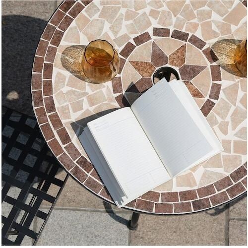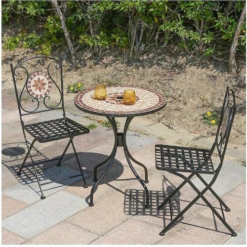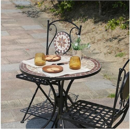エレガントにカフェ気分、モザイク調ガーデンテーブルです。 |