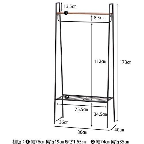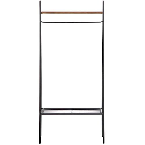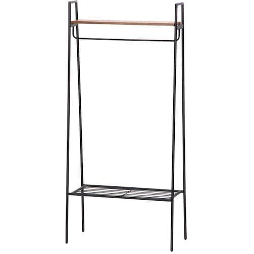 木とスチールを組み合わせたスタイリッシュなデザインです。バッグや帽子などの小物類の収納に便利な棚付きです。よく使用するファッションアイテムをサッと簡単に収納できます。 |