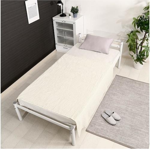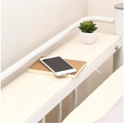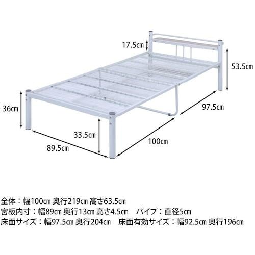 通気性バツグンなシンプルな宮棚付きパイプベッドです。 |