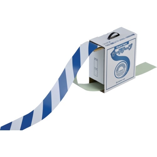 緑十字 ガードテープ(ラインテープ) 白/青(トラ柄) GT−101WBL 100mm幅×100m 148145 1巻