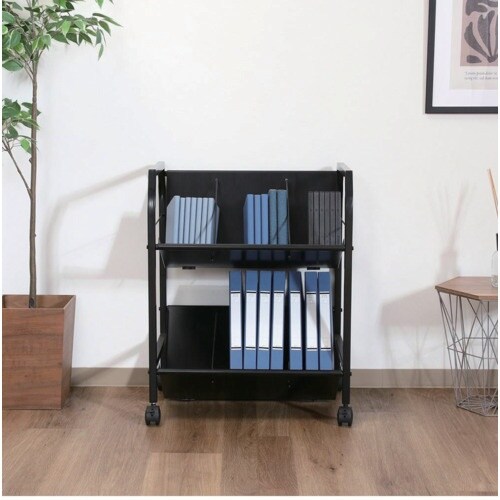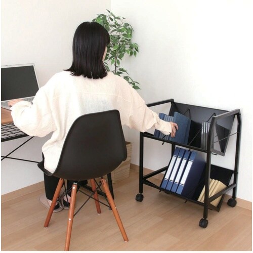 まとめて収納できるフルブラックでシックなシンプルワゴン2段です。 |