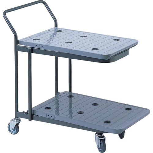 空車保管時にネスティングにより省スペース化できます。ネスティング式の2段運搬台車です。前面が開放型なので商品の取り出しが楽に行えます。引っ張っての運搬作業も安全です。店舗での荷物の運搬に。 |
