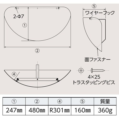 緑十字 ハーフドーム型ミラー(T字路安全確認用) LM−5 247×480×135mm 280031 1台