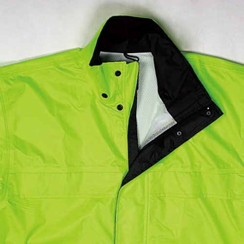 背中の視認性を考慮し、太めの反射テープを装備。ハードな環境を想定した、多機能なワーキングレインウエアに仕上げました。通勤、通学、作業、アウトドアに。