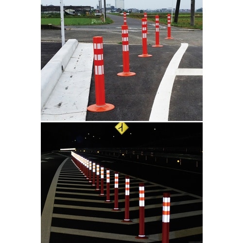 緑十字 ウェーブポスト(車線分離標) オレンジ WP−80AS 高さ800×台座250mmΦ 超高輝度プリズム型反射タイプ 特殊ウレタン製 373044 1本