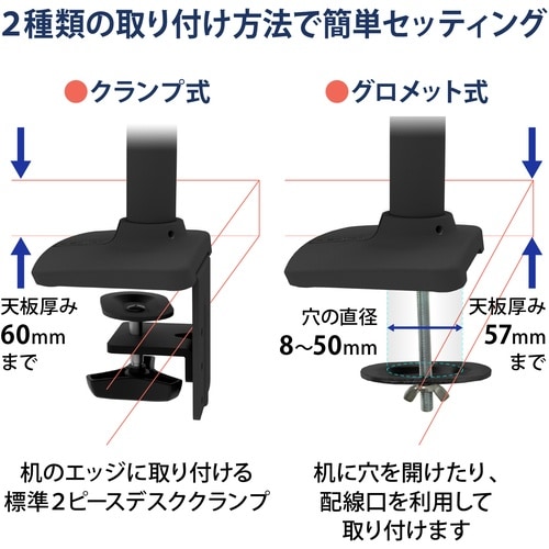多用途向けで拡張性の高いモニターアームです。オフィスワークにも在宅ワークにもおすすめです。 |