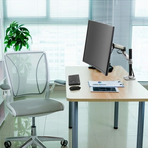 34cmポールで高い位置にモニターを設置できるモニターアームです。多用途向けで拡張性の高いモニターアームで、オフィスワークにも在宅ワークにもおすすめです。 |