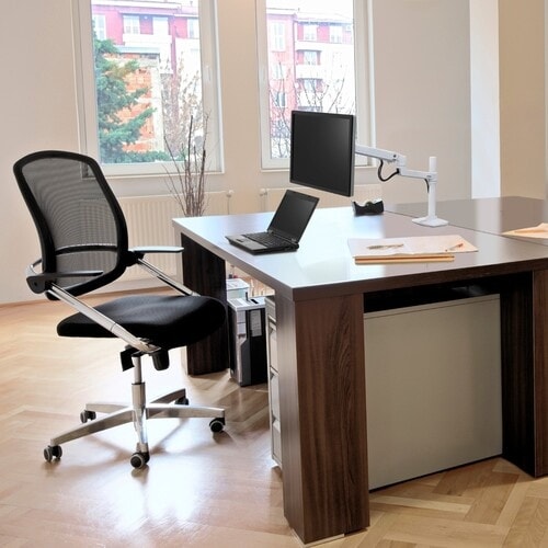 34cmポールで高い位置にモニターを設置できるモニターアームです。多用途向けで拡張性の高いモニターアームで、オフィスワークにも在宅ワークにもおすすめです。 |