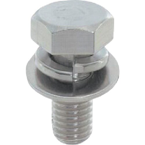 六角ボルト(全ねじ)にばね座金と平座金が組込まれており、脱落しません。組込み式なので作業効率が向上します。ステンレス鋼(SUS304系)なので耐食性、耐熱性に優れています。 |