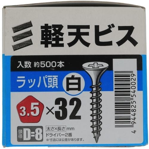 ヤハタネジ YAHATA 軽天ビス 白 箱 3.5×32(D=8)(500本入) 4944825540029 1箱(500本) A04K-1108