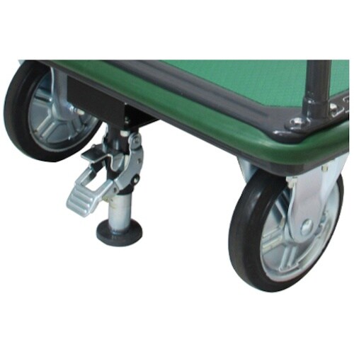 たわみのこない堅牢な固定ハンドル。自在車、固定車の位置入れ替えが可能です。車輪に標準ラジアルベアリングを採用、軽く静かに動きます。550kgの荷物を載せてもたわまない大型補強構造内蔵天板です。 |