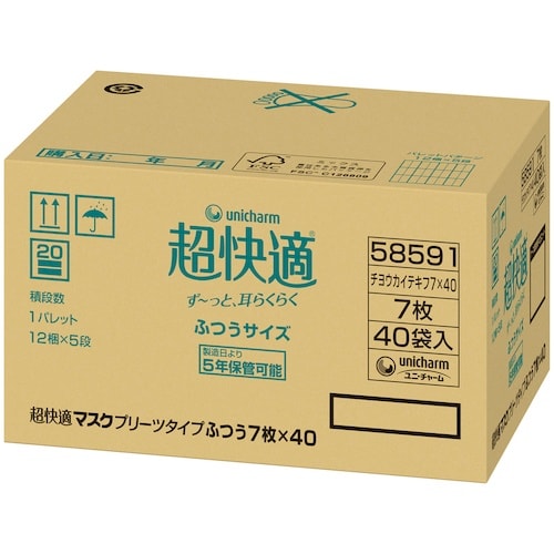ユニ・チャーム 超快適マスクプリーツタイプ ふつう7枚×40袋(長期保存) 585915 1箱(280枚)