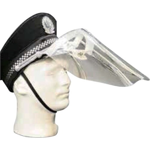 鍔付き帽子やヘルメットなど様々な形状に対応しています。シールドは耐衝撃性の高いポリカーボネート製です。シールドを外す事なく、吹笛や給水が可能です。感染症予防対策や熱中症対策に。 |