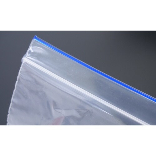 スーツや毛布など繊維製品のクリーニング保管用の袋になります。目視で大きさが分かるようにカラーライン(青)が入っています。チャック付きになります。洋服、スーツ、毛布など繊維製品のクリーニング保管用に。 |