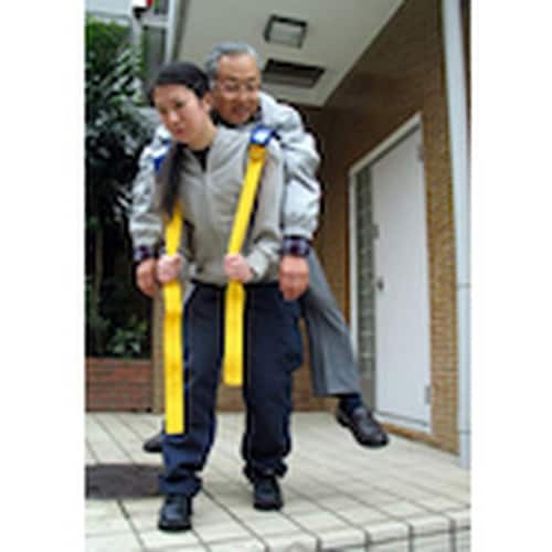 無理な荷重を身体にかけない、負担を軽減した構造です。両手が使えるので、避難時にドアをあけるなど安全な行動が可能になります。救護、搬送用に。 |