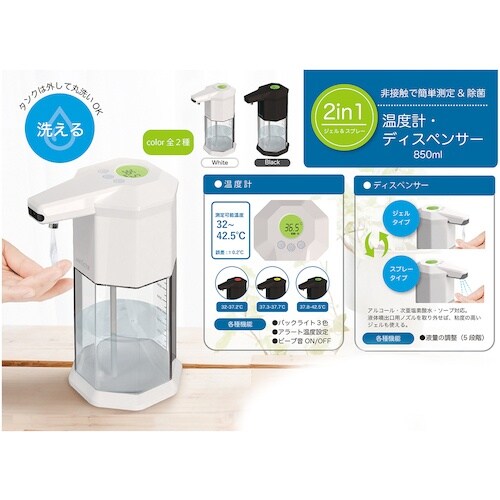 グリーンクロス 2in1 温度計・ディスペンサー RS−E1526 ブラック 6300020696 1台