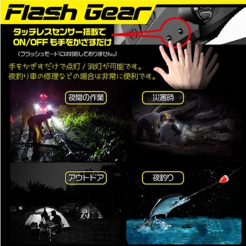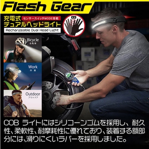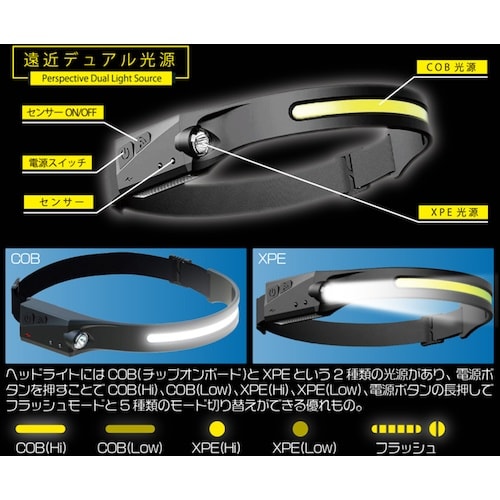 シリコーンゴムを採用し、耐久性、柔軟性、耐摩擦性に優れており、装着する額部分には滑りにくいラバーを採用しています。手元作業くっきりCOBライト、遠方を照らすXPEライトの2種類の光源を搭載しています。 |