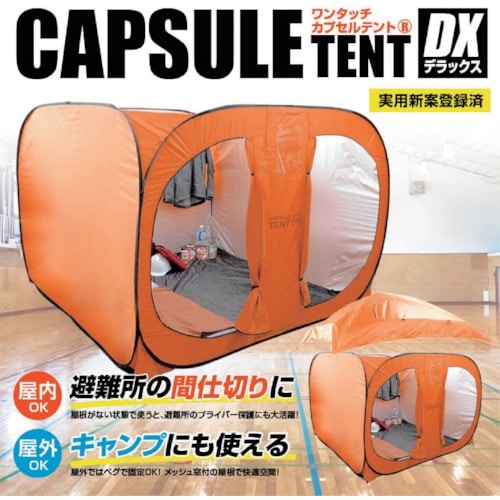 実用新案登録済のカプセルテントDXは、どこでも簡単に設置可能で、そこが個室に早変わりします。 テントはワンタッチで組み立て可能で、特に難しい作業無くカンタンです。 |