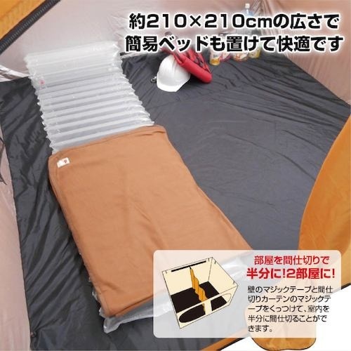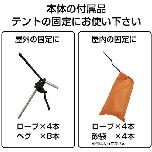 | 注意事項 | ※屋外では付属のロープとペグで固定してお使い願います。写真のテント内にある備蓄や衣服、ベッドなどは付属しておりません。 |