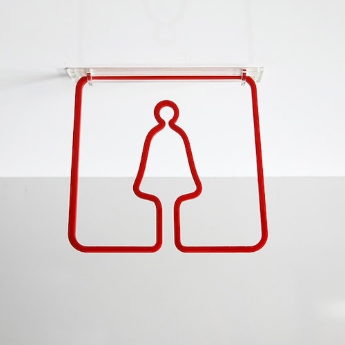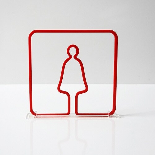 側面、天井面、置き型としても使える、誰でも簡単組み立て・設置可能なピクトサインです。女子トイレの場所表示看板に。 |