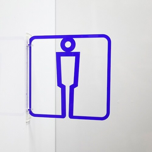 側面、天井面、置き型としても使える、誰でも簡単組み立て・設置可能なピクトサインです。男子トイレの場所表示看板に。 |