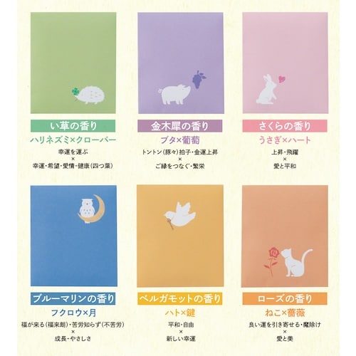 | 注意事項 | ※ビニール袋から本品を取り出し、財布などに入れてご使用ください紙を破るとお香の粉がこぼれる場合がありますので、開けたりやぶったりしないでください。使用に際しては、必ず(ご注意)をよく読んでからお使いください。 |