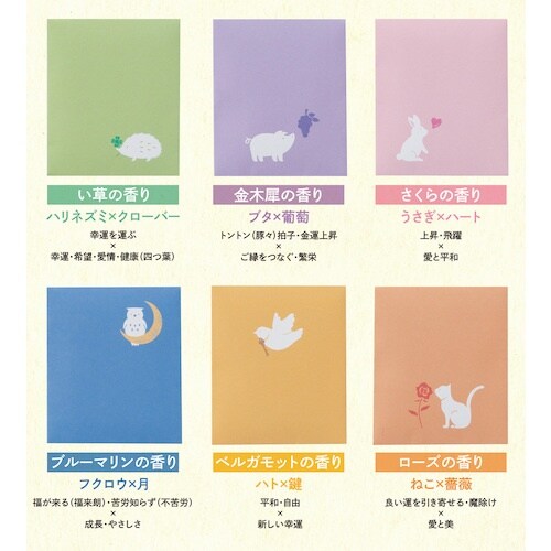 | 注意事項 | ※ビニール袋から本品を取り出し、財布などに入れてご使用ください。紙を破るとお香の粉がこぼれる場合がありますので、開けたりやぶったりしないでください。使用に際しては、必ず(ご注意)をよく読んでからお使いください。 |