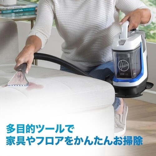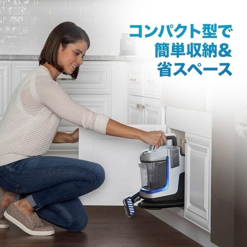 コードレスで持ち運びしやすく、急な汚れ、食べこぼし、ペットの汚物に楽に対処できます。軽量で、階段や家具の布地などのお掃除も簡単です。収納に便利なコンパクトサイズです。 |
