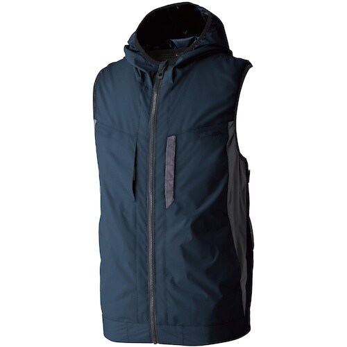 軽量ポリエステル素材を使用したストレスフリーな着心地です。高い紫外線カット率で日焼けを防止します。裏側シルバーコーティングの遮熱生地を使用しています。運転などの動作を妨げない横付ファン仕様です。 |
