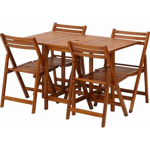 コンパクトに収納できるテーブル・チェア4脚セットです。 |