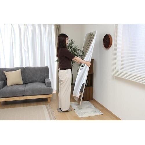鏡面はガラスではなく、ポリエステルフィルムを使用しているため、割れることが無く安心してご使用いただけます。本体は約2kgと軽量で、女性一人でも簡単に移動可能です。