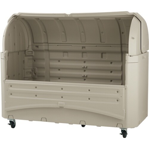 本体は耐衝撃性に優れた二重壁パネル構造です。フタはシングルパネルで軽く開閉しやすいです。開閉スペース不要で動作しやすいスライドフタです。フタは外側スライドなので雨水が入りにくいです。 |