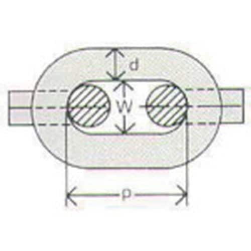 全長(m):30 | 線径d(mm):9 | 内長P(mm):36 | 内幅W(mm):14 | 使用荷重(kN):10.78 | W(mm):14 …