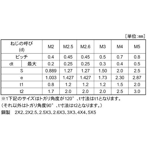 寸法(mm)d:M2.5 | 寸法(mm)L:4 | ねじ長さ(mm):4 | 材質・仕上げ:鉄(または標準) | 表面処理:三価ブラック | 単位:…